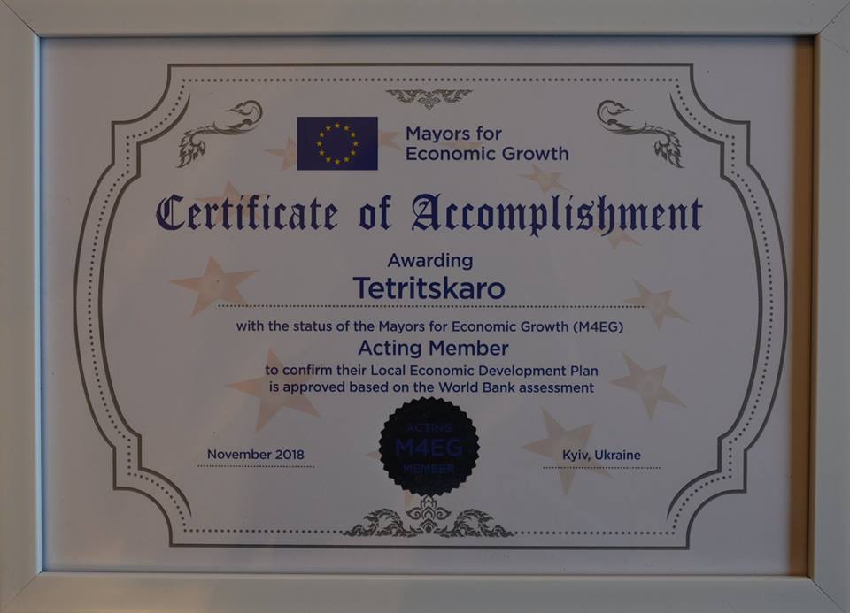 თეთიწყაროს მუნიციპალიტეტის მერიის მიერ, ევროკავშირის ინიციატივის „მერები ეკონომიკური ზრდისთვის“ ფარგლებში შემუშავებული, 2019-2020 წლების ადგილობრივი ეკონომიკური განვითარების გეგმა მსოფლიო ბანკმა დადებითად შეაფასა და ნოემბრის თვეში ქ. კიევში აღმოსავლეთ პარტნიორობის ქვეყნებისთვის გამართულ, მაღალი დონის ორდღიან კონფერენციაზე, მუნიციპალიტეტის წარმომადგენლობას სპეციალური სამახსოვრო ჯილდო გადაეცა.