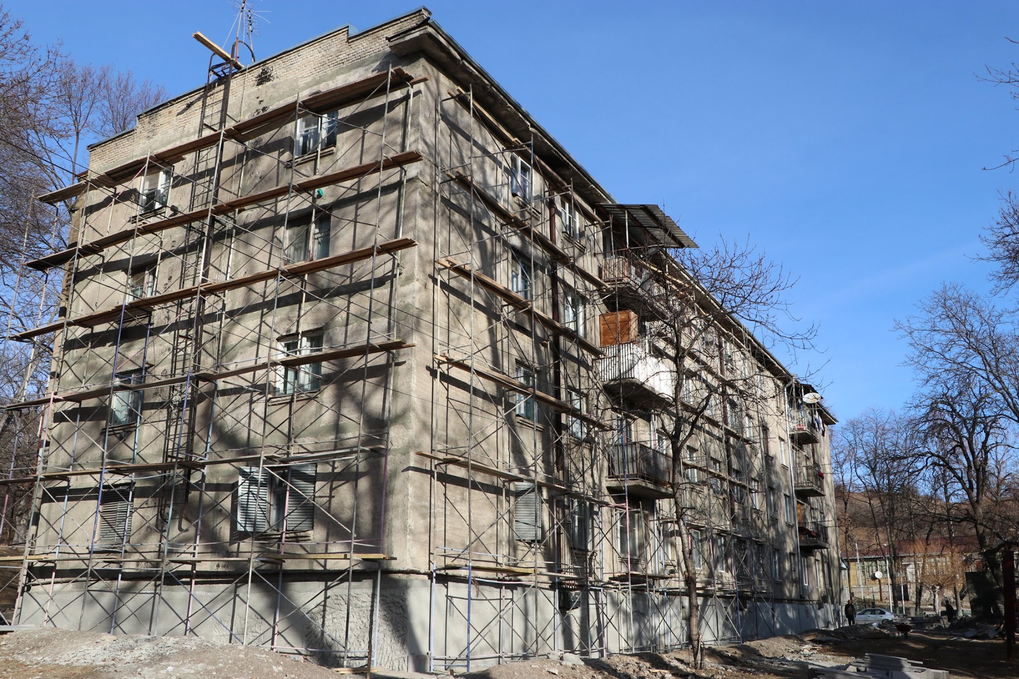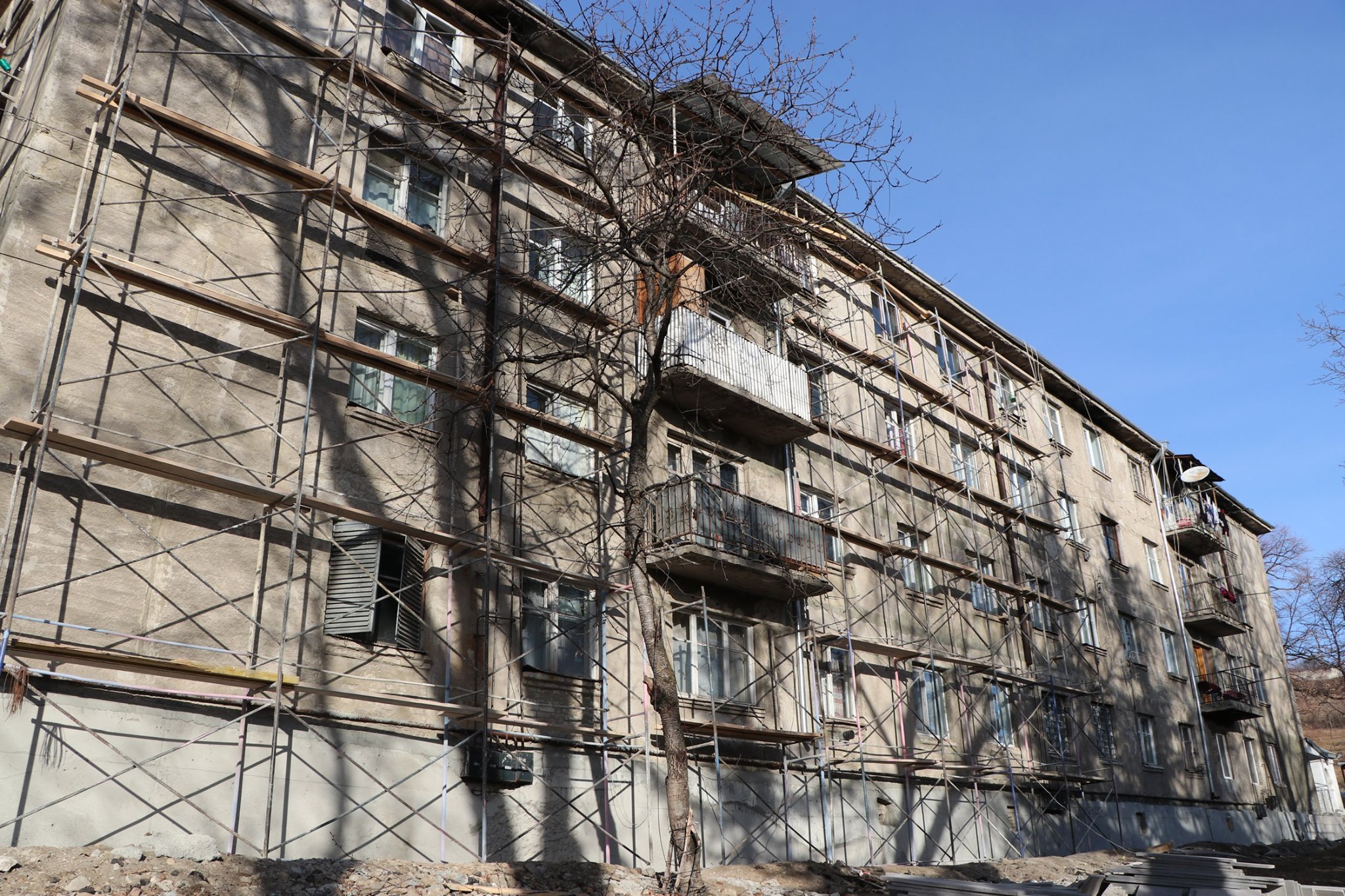ქალაქ თეთრიწყაროში თამარ მეფის ქ N1-ში მდებარე მრავალბინიანი საცხოვრებელი სახლის ფასადის რეაბილიტაცია მიმდინარეობს.
