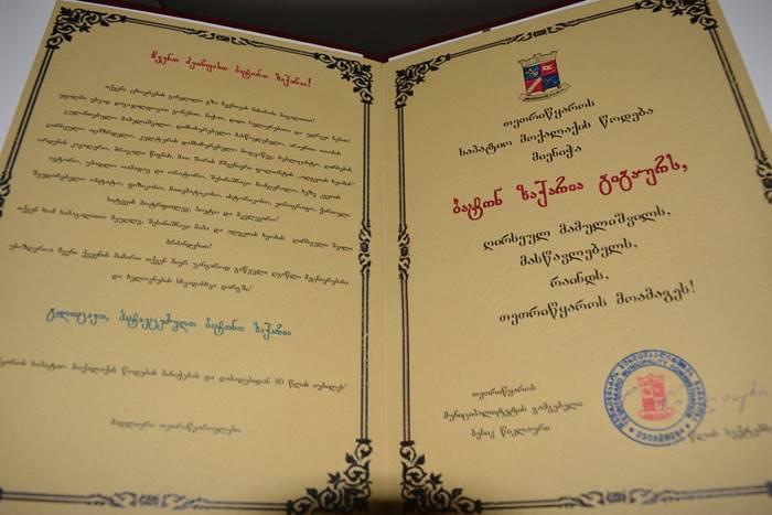 ზაქრო გიგაურს თეთრიწყაროს საპატიო მოქალაქის წოდება მიენიჭა